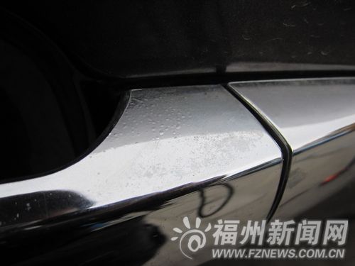1日下午,記者見到了林先生。他告訴記者,這輛別克汽車是2012年5月份花50余萬元在福州中機中泰汽車銷售有限公司購買的,還沒到3個月,車上的電鍍配件就出現了褪色的現象。