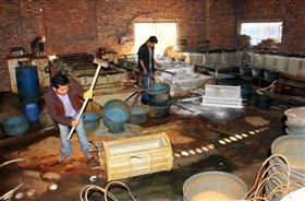 昨日上午,記者隨同環(huán)保執(zhí)法人員前往子英村工業(yè)區(qū)。這兩家非法小電鍍均暗藏于一家名為“利德利機(jī)構(gòu)”的廠房?jī)?nèi),藏身隱蔽、設(shè)備簡(jiǎn)陋,兩家非法小電鍍一大一小,小的設(shè)2個(gè)滾鍍槽1個(gè)掛鍍槽、大的設(shè)3個(gè)滾鍍槽2個(gè)掛鍍槽。雖然兩家小電鍍相隔不遠(yuǎn),但因所處廠房十分隱蔽,幾番左拐右拐后方能發(fā)現(xiàn)。記者看到,這兩家非法小電鍍的生產(chǎn)廢水未能處理,直接向下水道排放,從其加熱電鍍液的煤爐溫?zé)岬嫩E象看,兩家小電鍍前夜仍在作業(yè)。