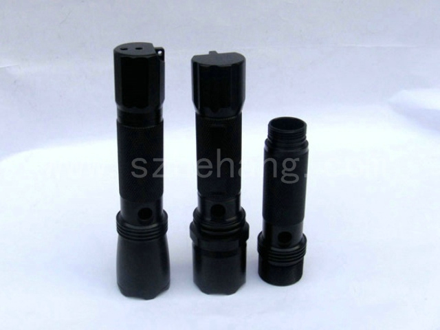 合航高品質(zhì)的軍用手電筒硬質(zhì)氧化,膜厚可控制在40-50um,耐磨性能良好,顏色均勻一致。