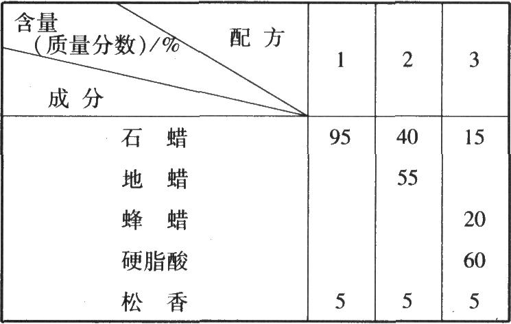 (1)涂蠟制劑。用蠟制劑絕緣的特點是絕緣層與零件基體的粘結性能好,端邊在使用過程中不會翹起,適用于絕緣端邊尺寸公差要求高的零件。此外,蠟制劑可回收利用。典型的蠟制劑配方見表2—4—9。